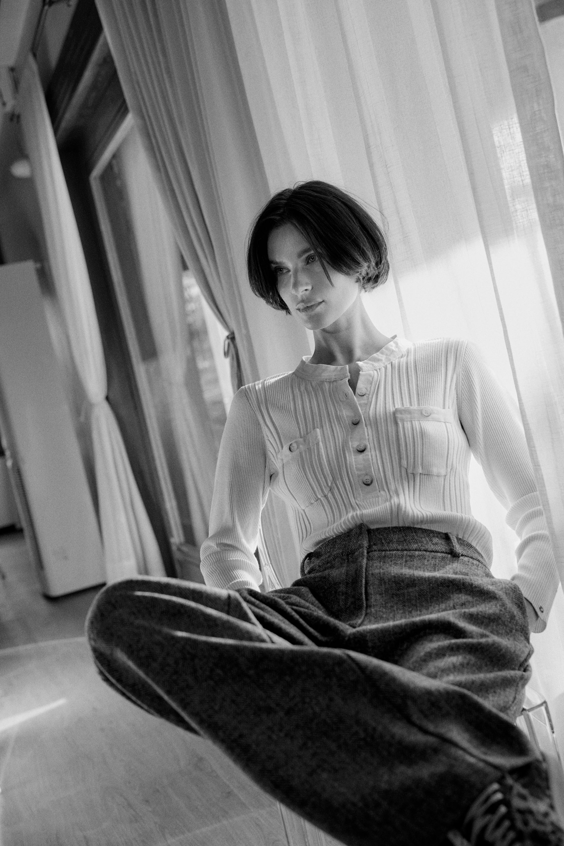 Den råeste genseren fra norske katrin uri. Her får du den ultimate genseren med lange ermer, rund hals og med ton i ton søm i cord med knapper. Lommer foran med knappe detalher og kant. Den er supermyk og ribbestrikket.