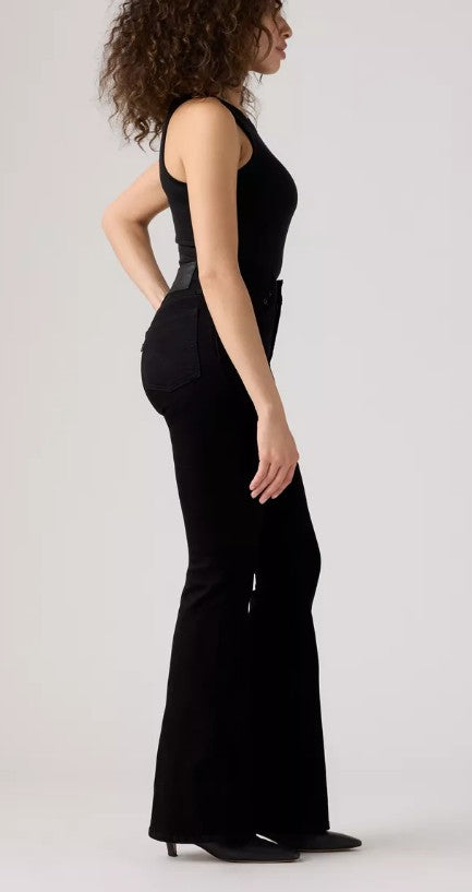 En ny jeans fra ikoniske Levis med god flare nederst. Denne er helt sort i vasken og ren. Sømmene er ton i ton. High waist bukse smal hele veien og med sleng nederst.
