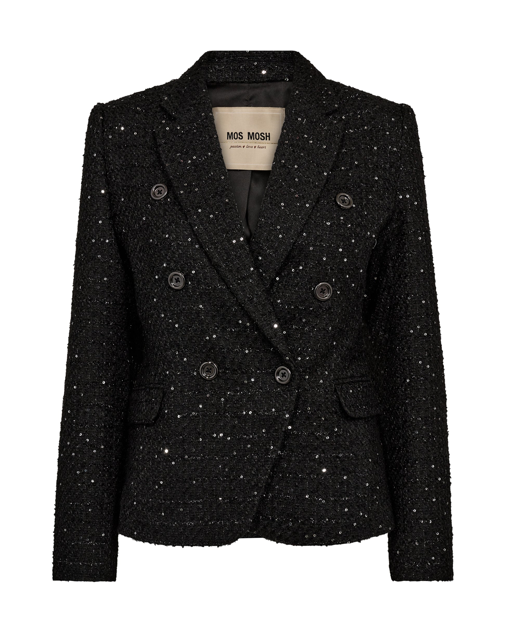 Den råeste blazeren for alle fester! Her har du den ulitmate korte blazeren med 6 knapper, kun to for funksjonalitet. Vanlig blazer krage med lange ermer med knapper i sidene. To lommer foran som kan splittes opp. Jakka er i sort med glitter paljetter i. Like fin over en sort bukse som kjolen eller skjørtet!