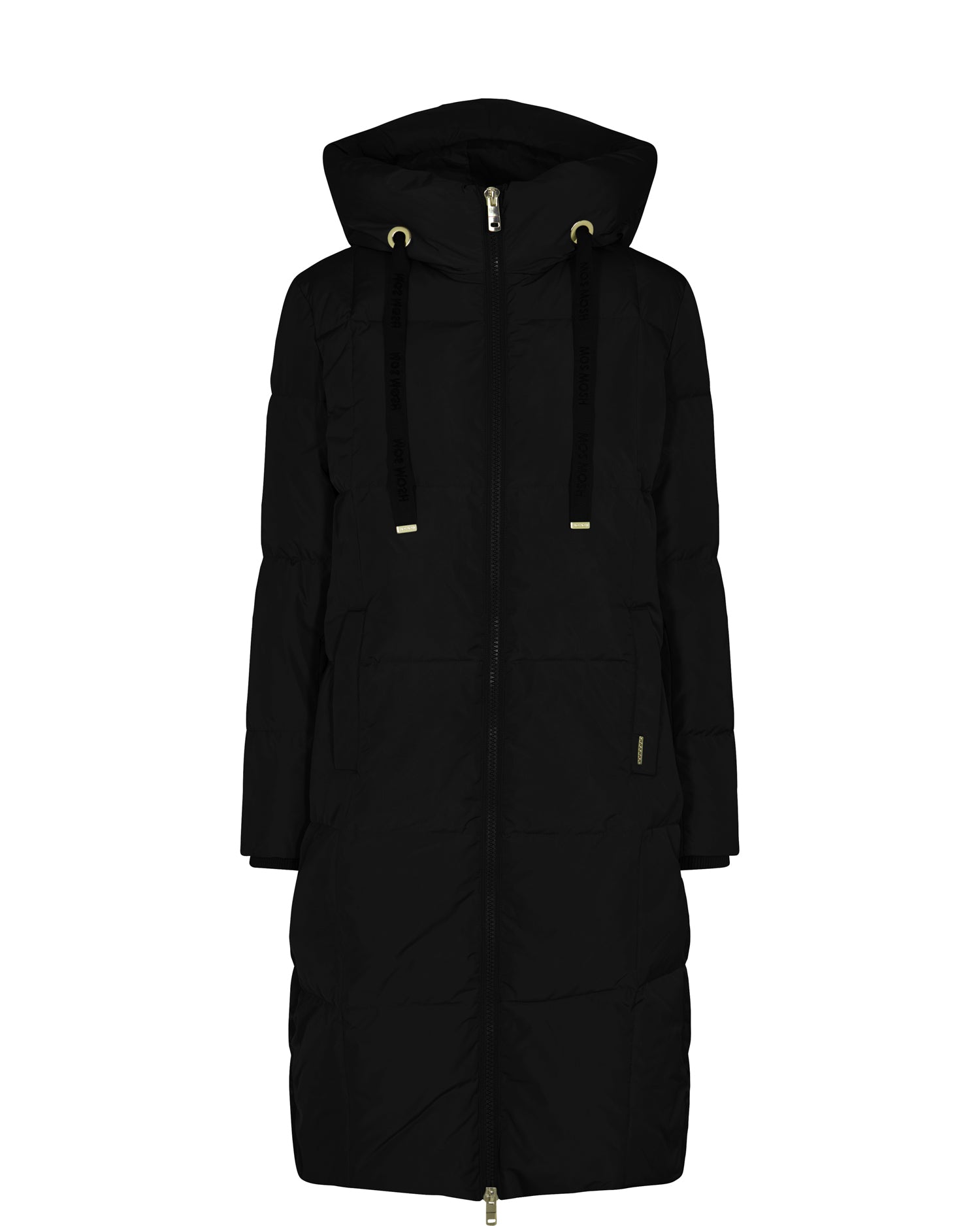 Nova er tilbake i sort! Denne fantastiske dunkåpa som både er fin og varm, Med hette og snøring til hette. Snøstopper på ermene. Glidelås ton i ton svart på sidene nede og foran. Gull detaljer.