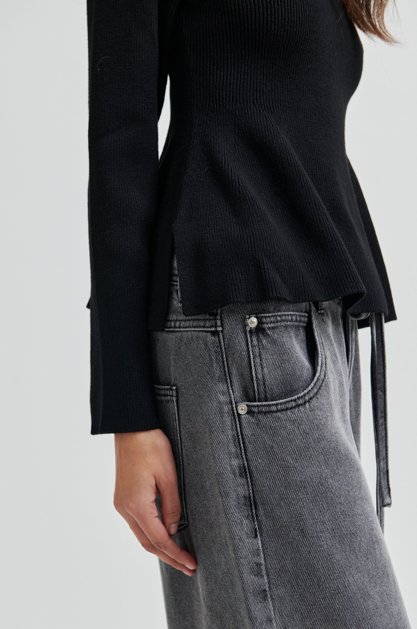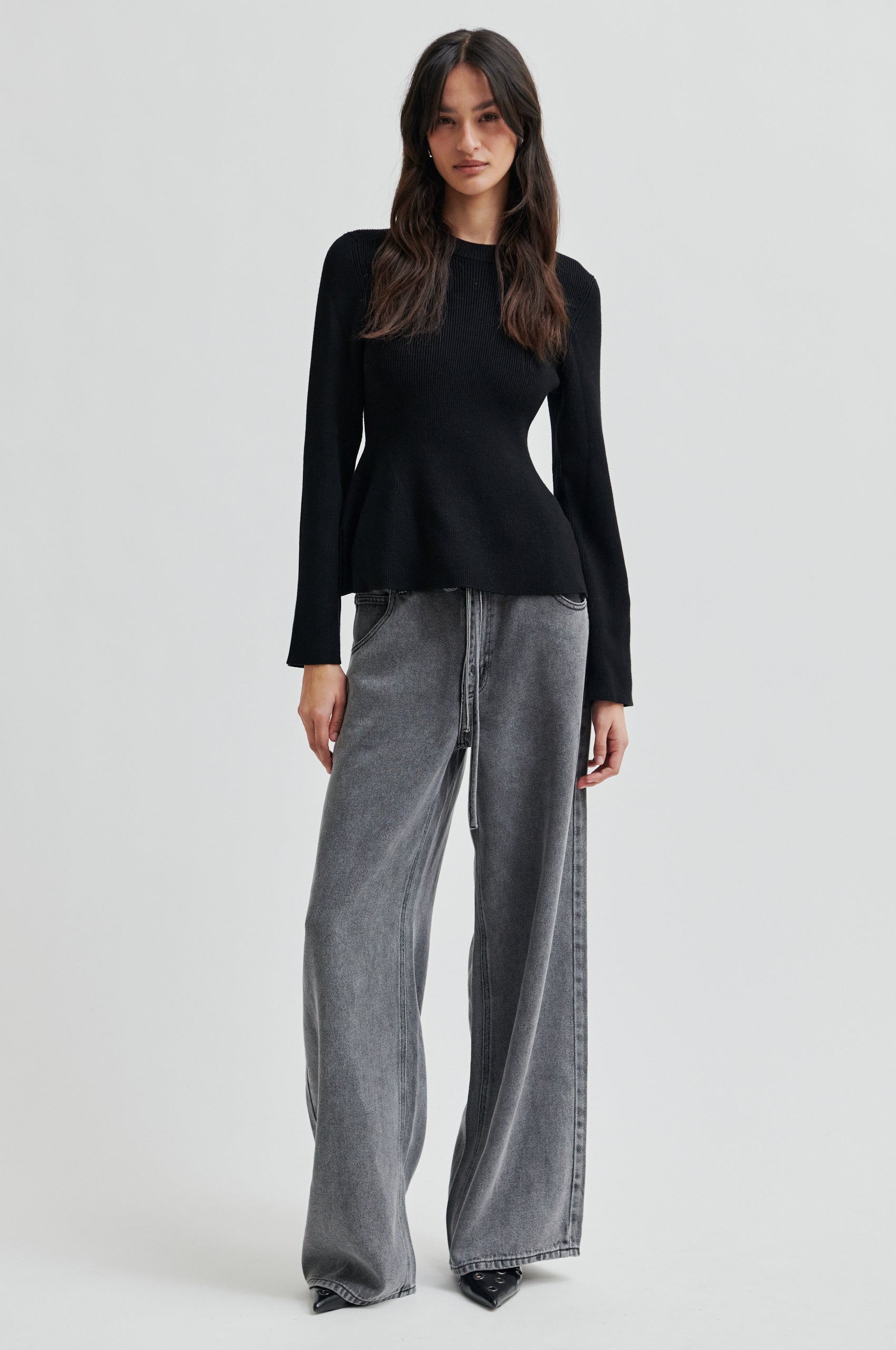 Strikket knit i tungt materiale. Genseren er innsvingt i livet så man får en veldig fin fasong. Denne har rund hals og lange ermer.